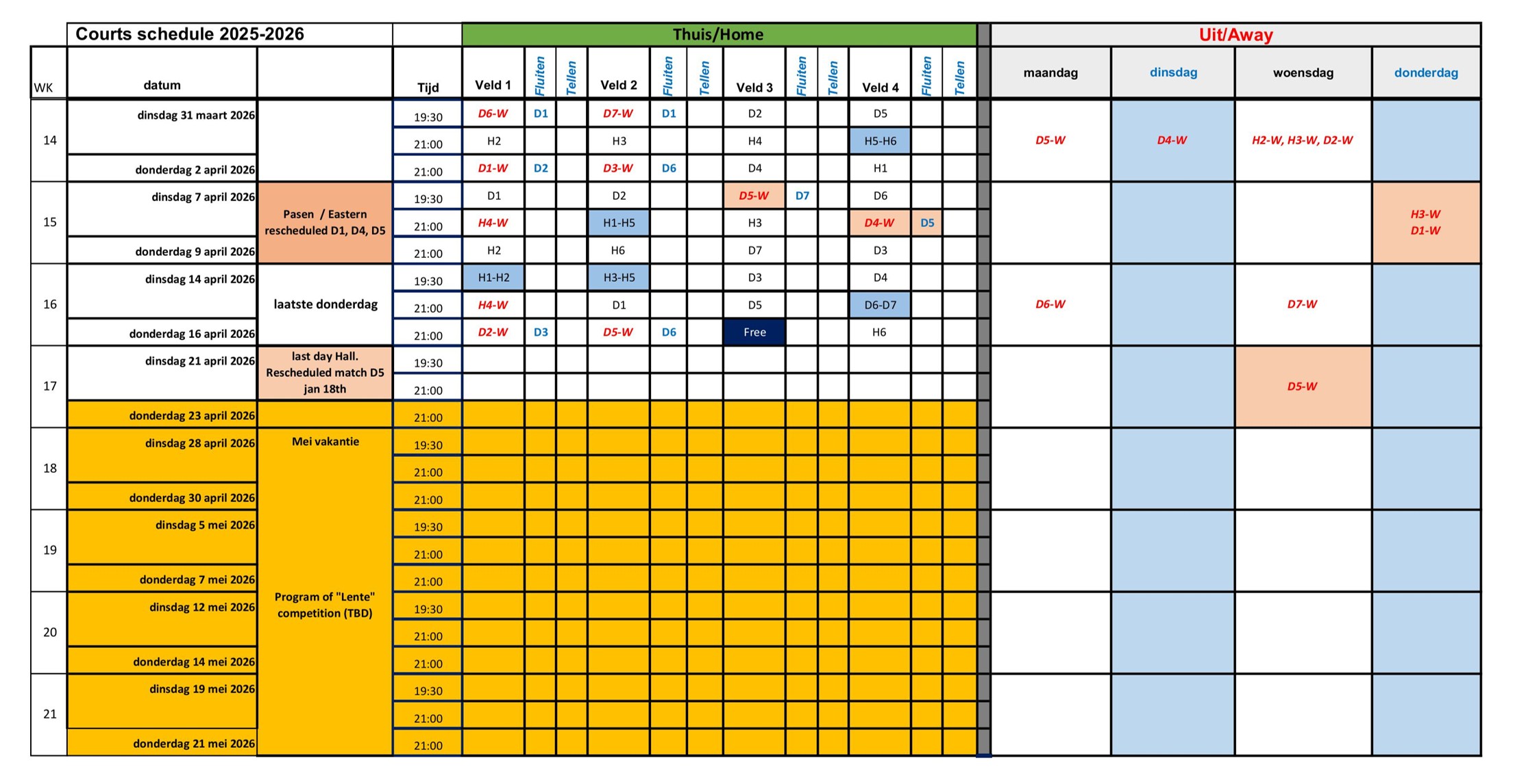 Here's the Field schedule 2025-2026 - status January 31, 2026