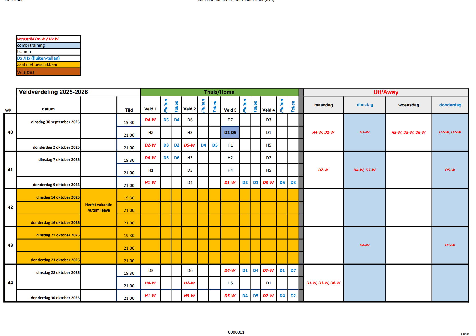 Hierbij het zaalschema tot en met eind oktober.